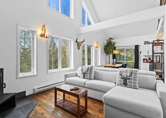 Under vistelsen i 4Br Retreat With Jacuzzi And Mont-Tremblant View Villa kan du njuta av bubbelpool och hydromassagebadkar eller besöka Plage du lac Mercier, som ligger cirka 3 km bort. Den här villan, som ligger cirka 10 minuters bilresa från Express Flying Mile, erbjuder WiFi och en parkering.